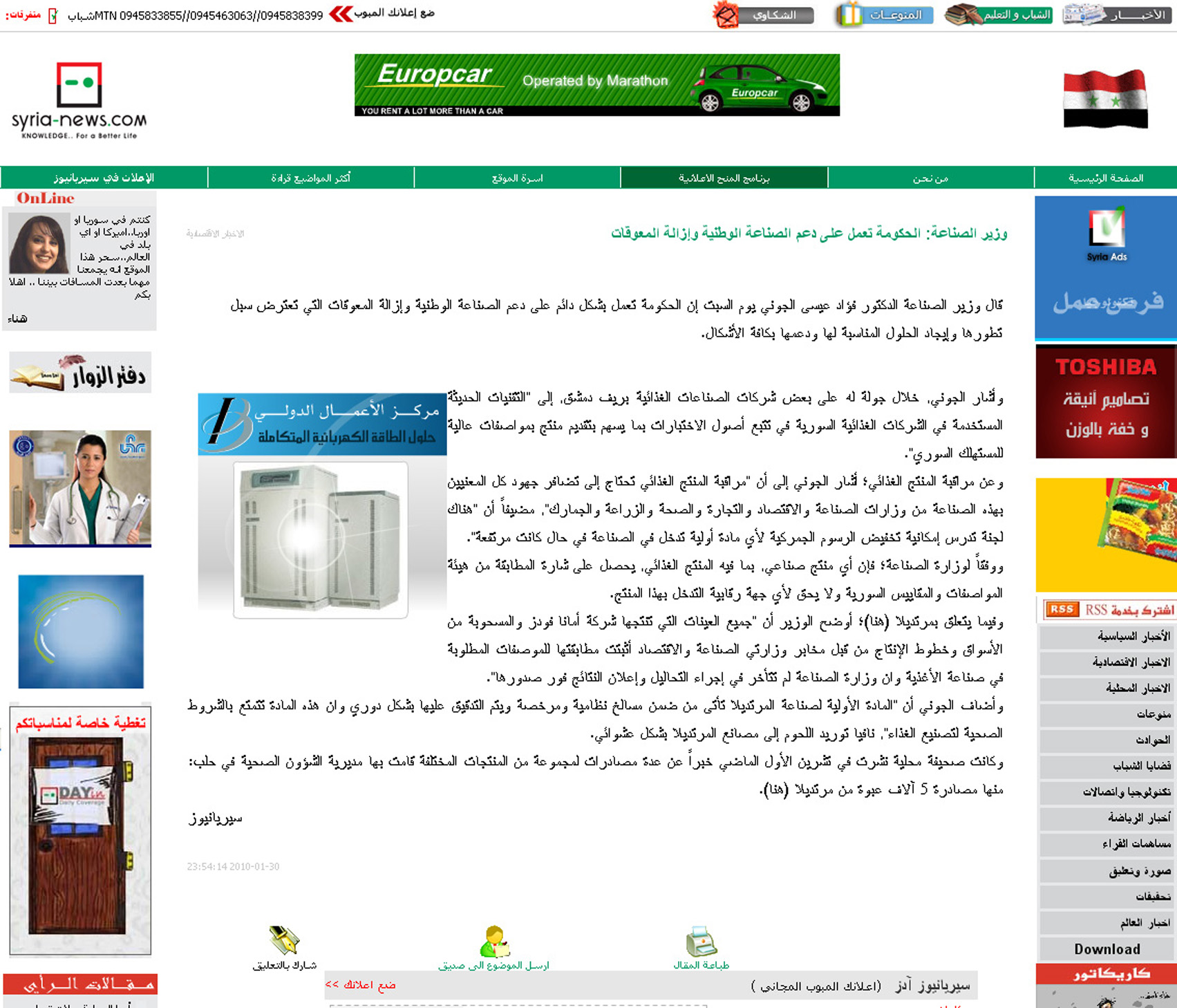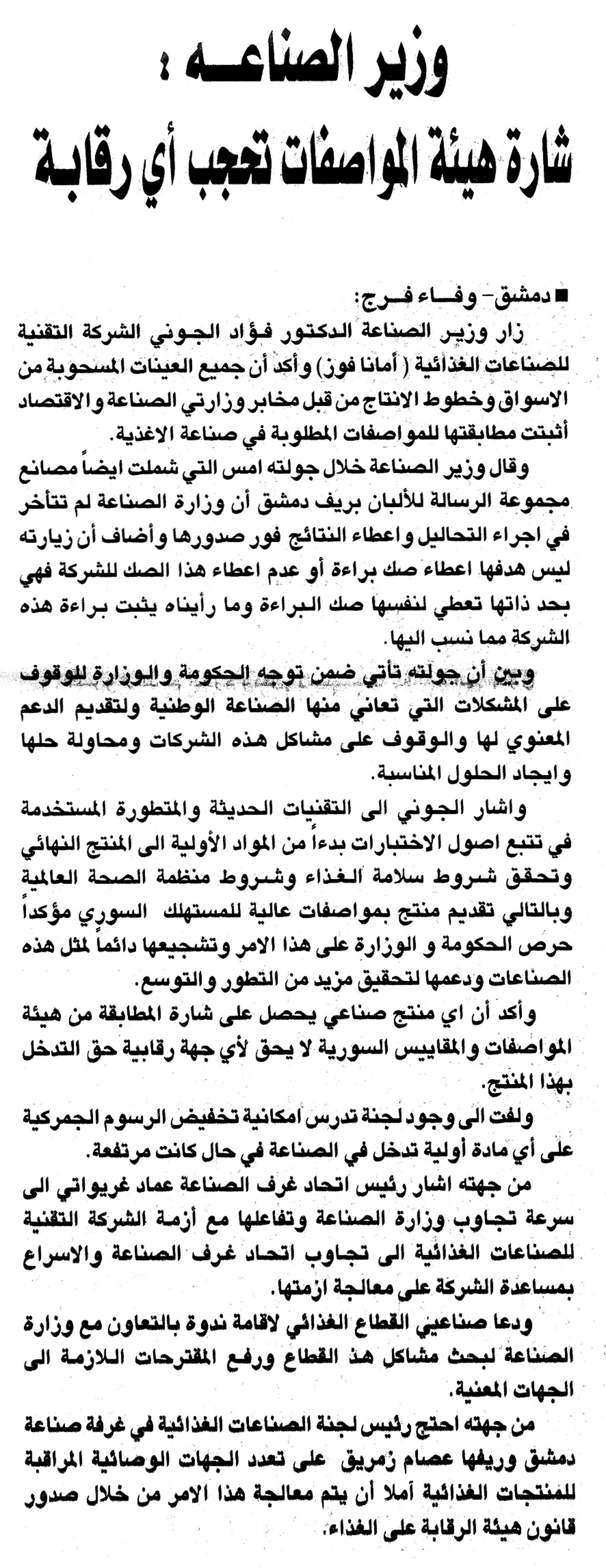 Damascus, Syria, P.O.BOX:5414, Tel:+963116922423 | Fax:+963116922422 |