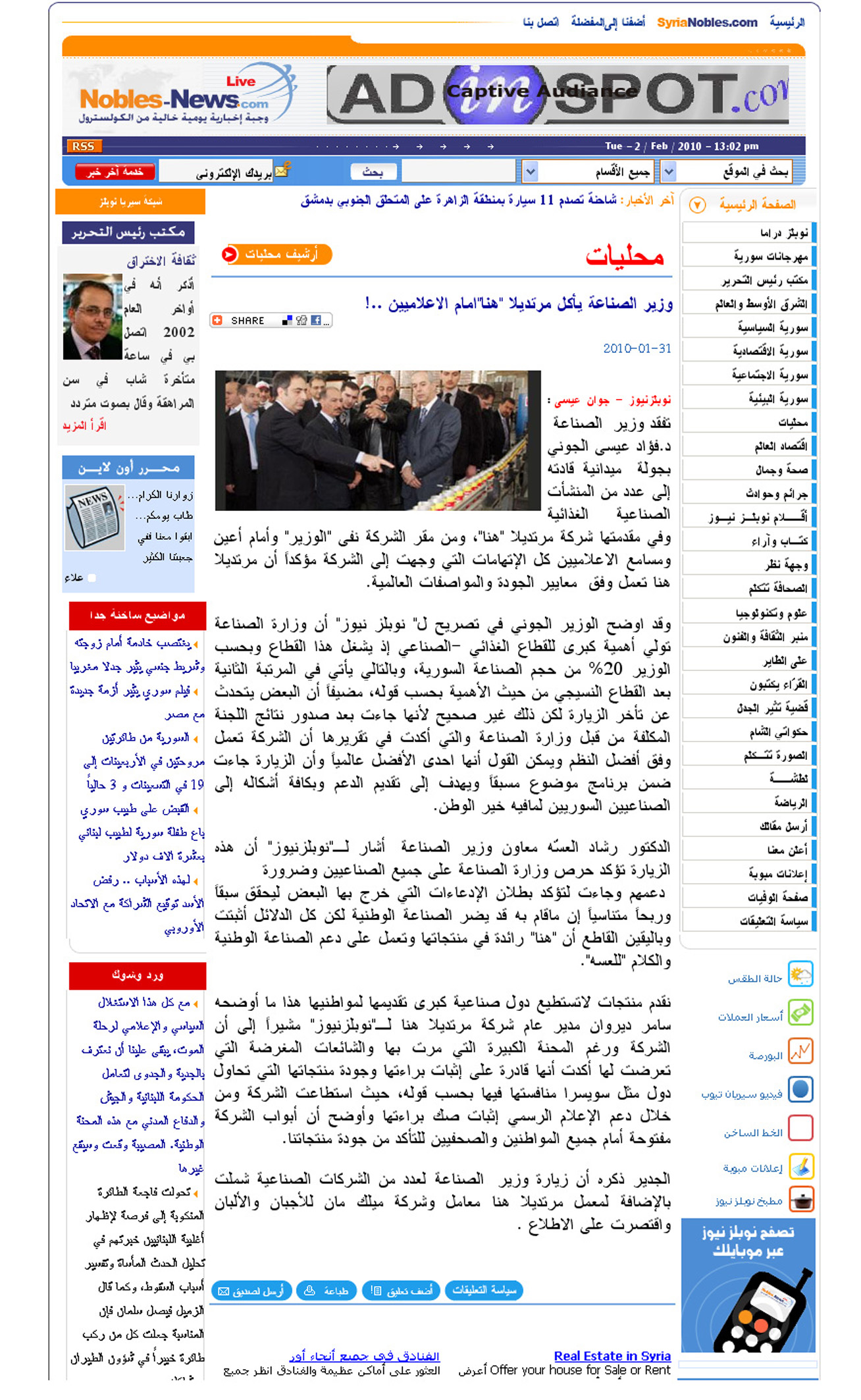 مرتديل هنا و زيارة السيد وزير الصناعة في راديو أرابيسك