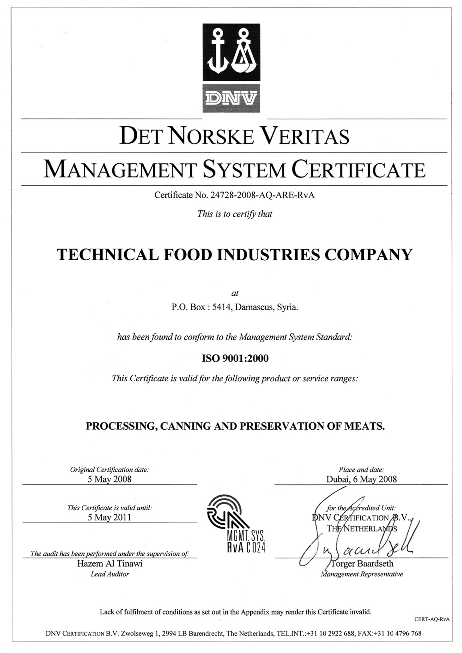 : ISO 9001:2000 |
