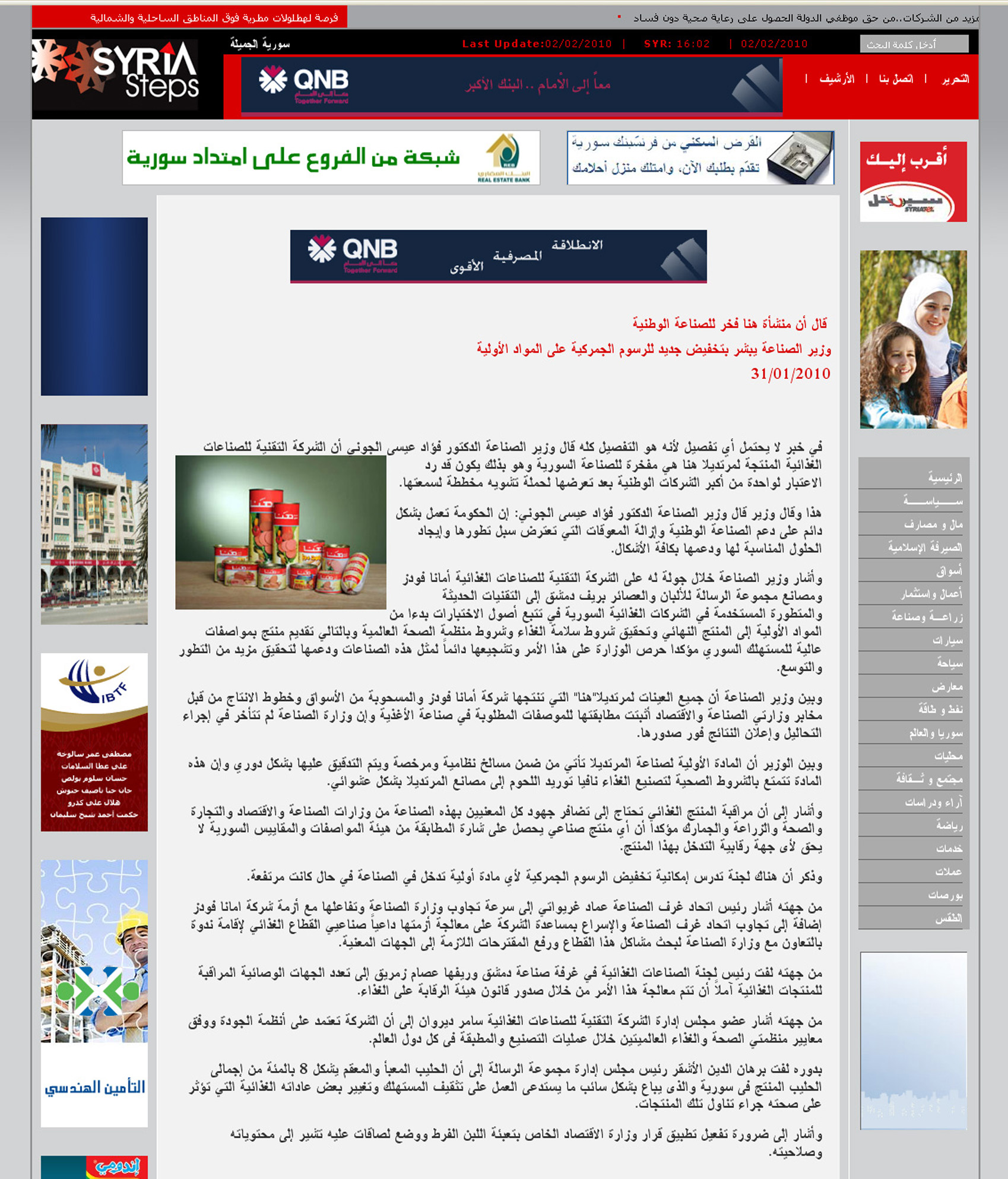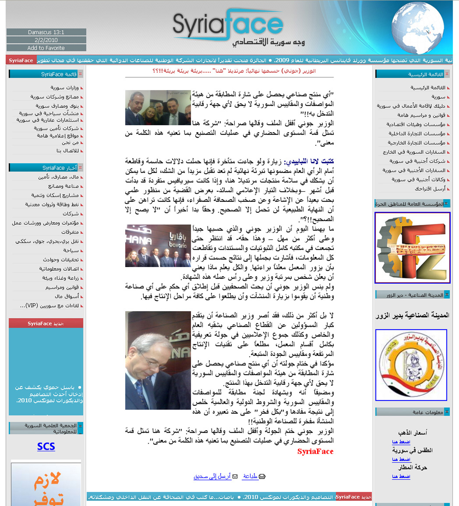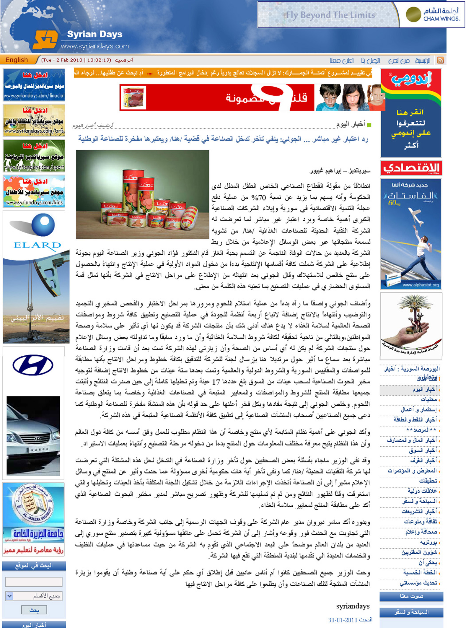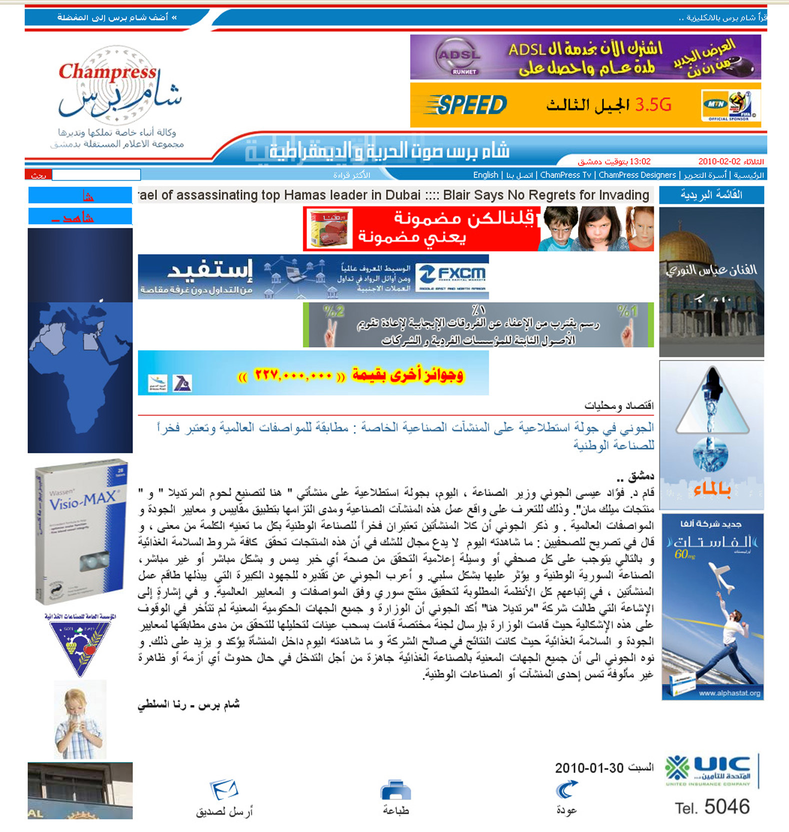 Damascus, Syria, P.O.BOX:5414, Tel:+963116922423 | Fax:+963116922422 |